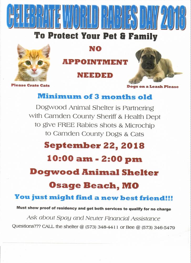 Free Microchipping Rabies Clinic At Dogwood Animal Shelter Press Releases Camden County Missouri Sheriff S Office